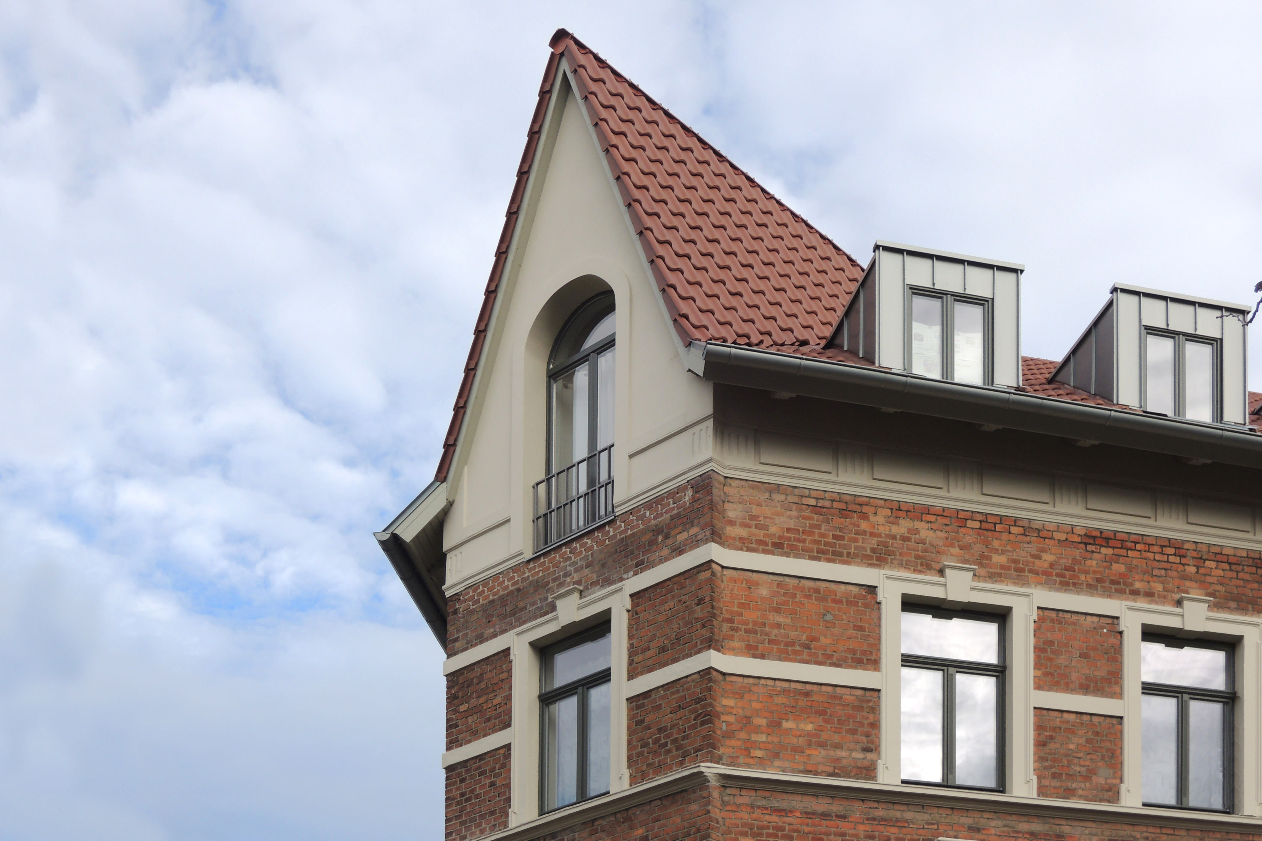 Sanierung eines gründerzeitlichen Eckhauses mit Errichtung eines Eck-Dacherkers und Dachgauben