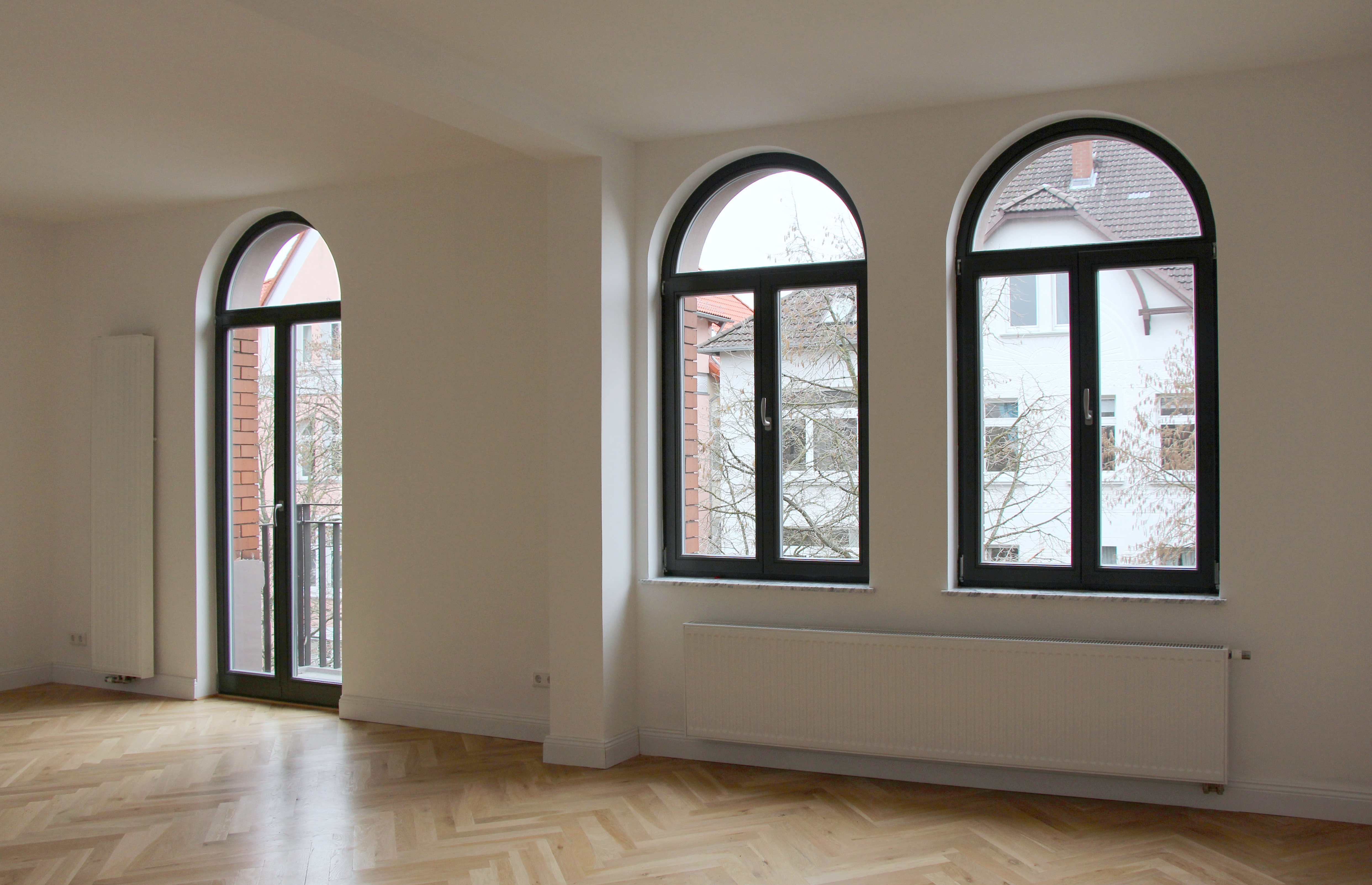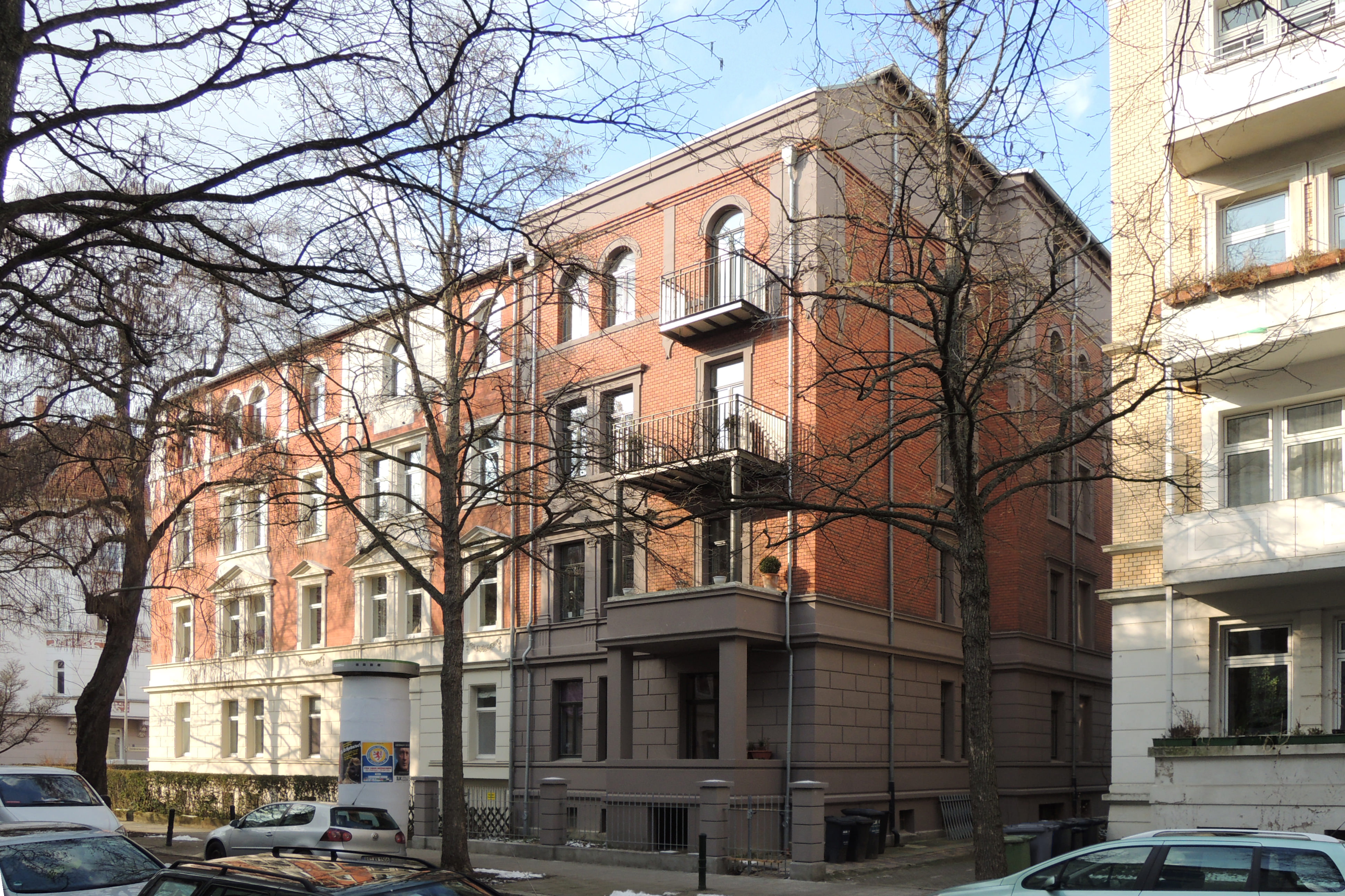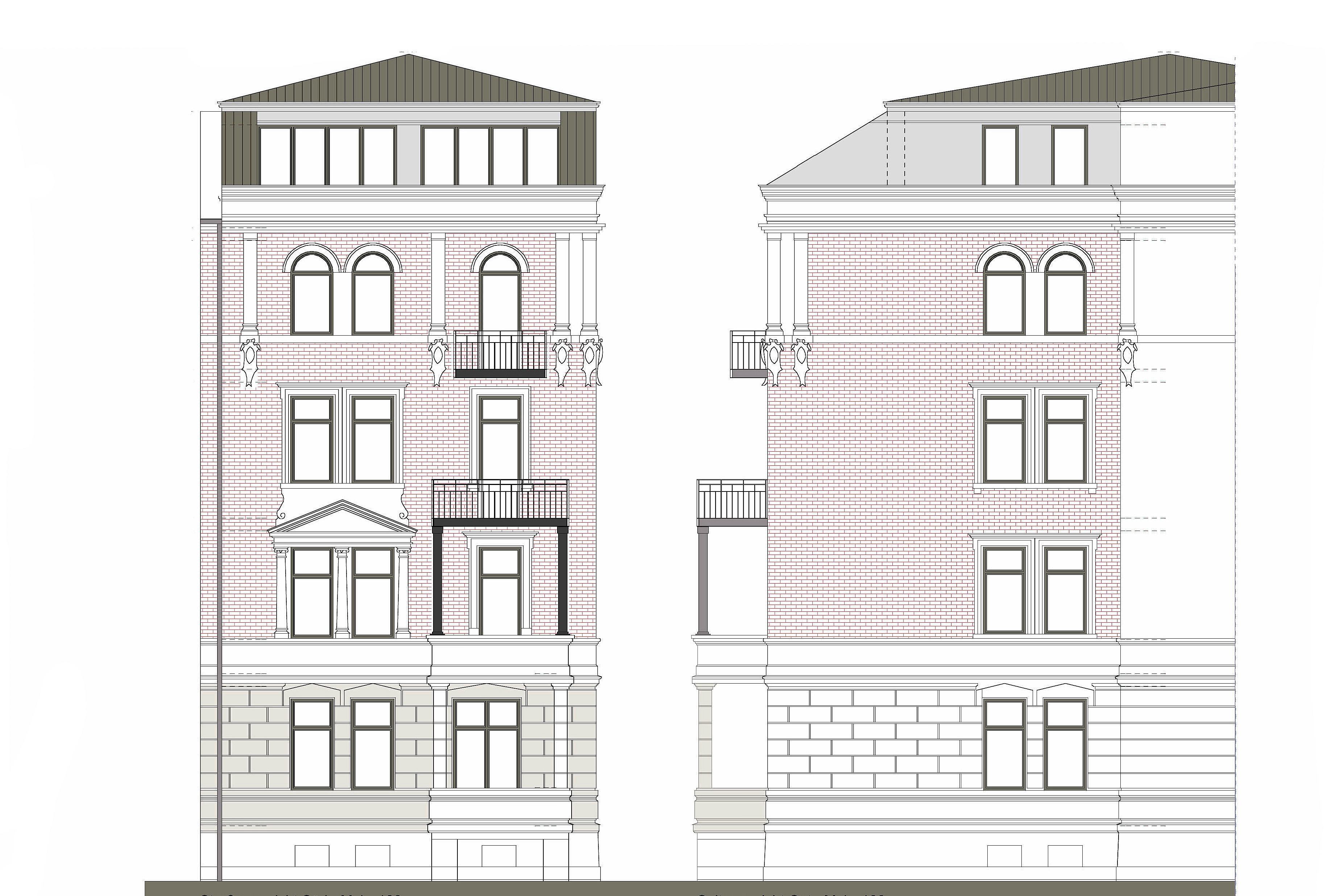 Die bestehenden Wohnungen in dem viergeschossigen, um 1896 errichteten Mehrfamilienhaus wurden durch den Anbau von Balkonen und den Umbau des Dachgeschosses erweitert. Die neuen Balkone wurden entsprechend der Gestaltung der repräsentativen Straßenfassade vom massiven Sockelgeschoss zum bekrönenden 3. Obergeschoss mit Rundbogenöffnungen im Sockelbereich massiv und nach oben in ihrer Konstruktion leichter werdend entwickelt. Das nach dem 2. Weltkrieg nachlässig wieder aufgebaute Dachgeschoss wird zu einem Sockelgeschoss rückgebaut und bildet straßenseitig eine Dachterrasse mit einer von Gesimsbändern geprägten Brüstung als angemessenen oberen Abschluss des Gebäudes.
