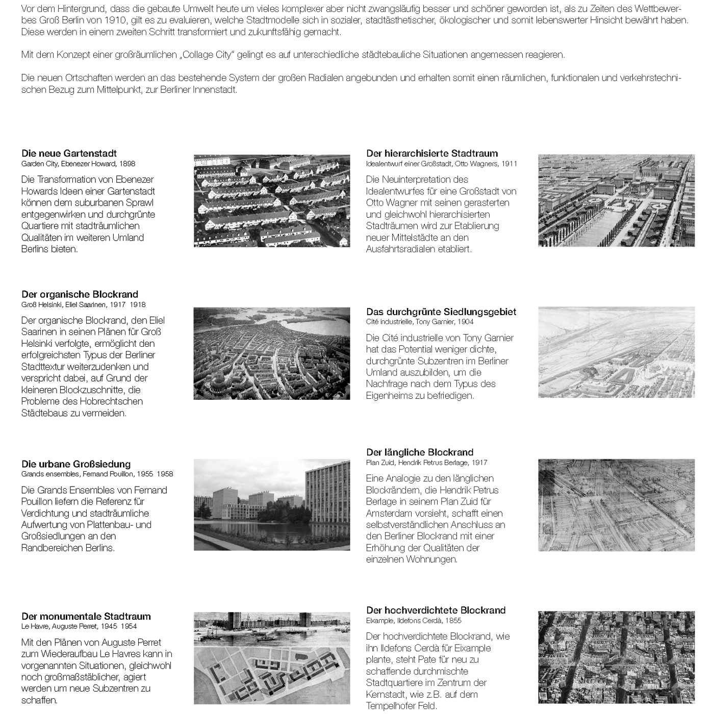 Wenn wir uns fragen, was Berlin und Brandenburg zu so besonderen Metropolregionen macht, dann ist es die Diversität der Architekturen und Quartiere, die aus völlig unterschiedlichen Epochen der gesamten Stadtbaugeschichte stammen. Der Hobrechtsche Blockrand, die gebaute Moderne, die sozialistischen Stadtplanungen aber auch die Dörfer, die ländliche Weite und die Seenlandschaft im Brandenburger Umland tragen für uns gleichberechtigt zu Qualität und einzigartigem Charakter der Metropolregion bei. All das möchten wir nicht missen und in Frage stellen. Daher lehnen wir ein Tabula rasa Denken sowie utopische Fiktionen für Berlin und Brandenburg zu Gunsten eines Learning from the Cities ab. Unser referenzieller Blick richtet sich auf die gesamte Geschichte des Städtebaus in Europa, um bewährte Lösungen zu finden, mit denen die vorgefundenen Typologien behutsam transformiert und weiterentwickelt werden können.