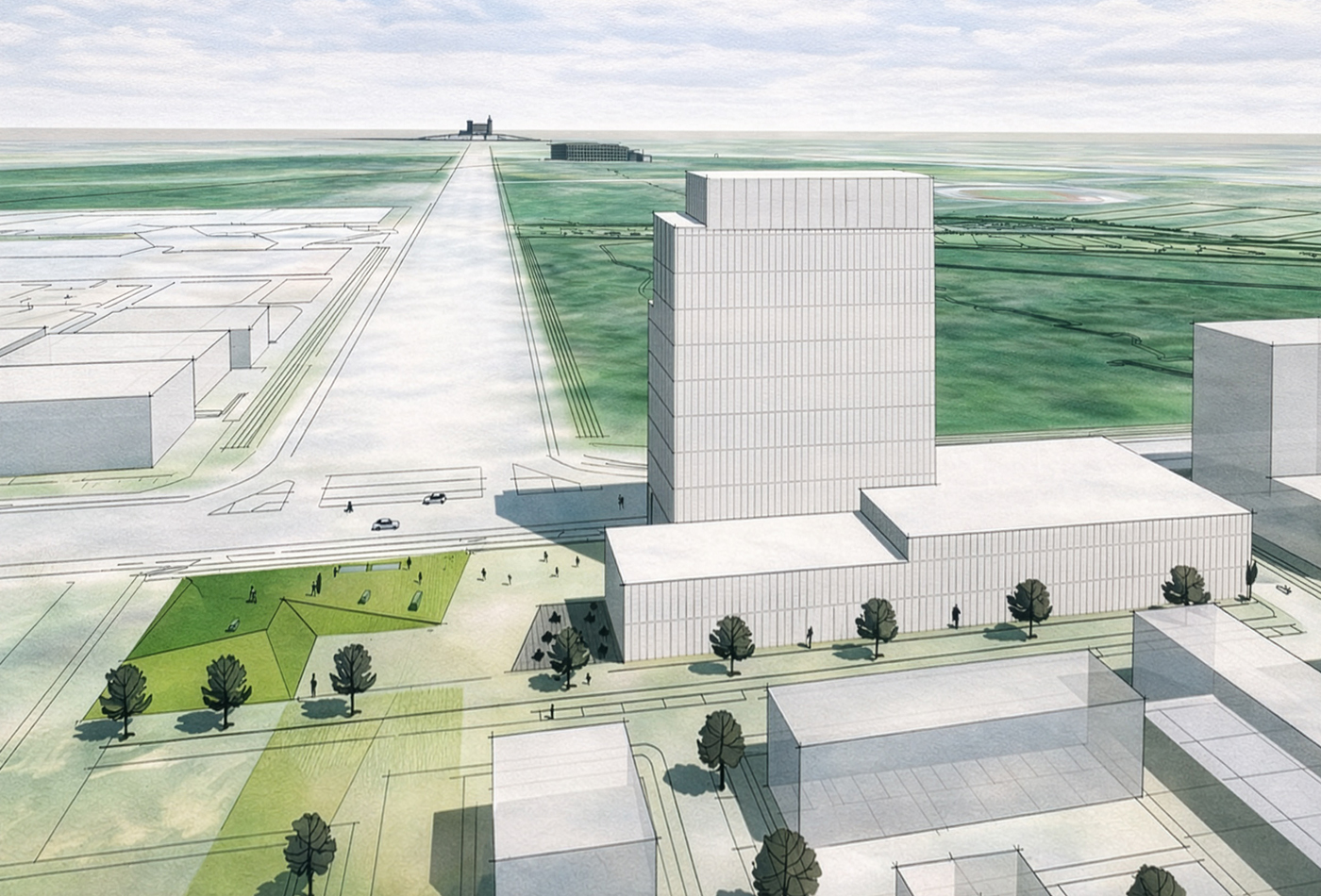 Neubau Hotel-Hochhaus in Nachbarschaft zur ehemaligen „Großen Straße“ des Nürnberger „Reichsparteitagsgeländes“