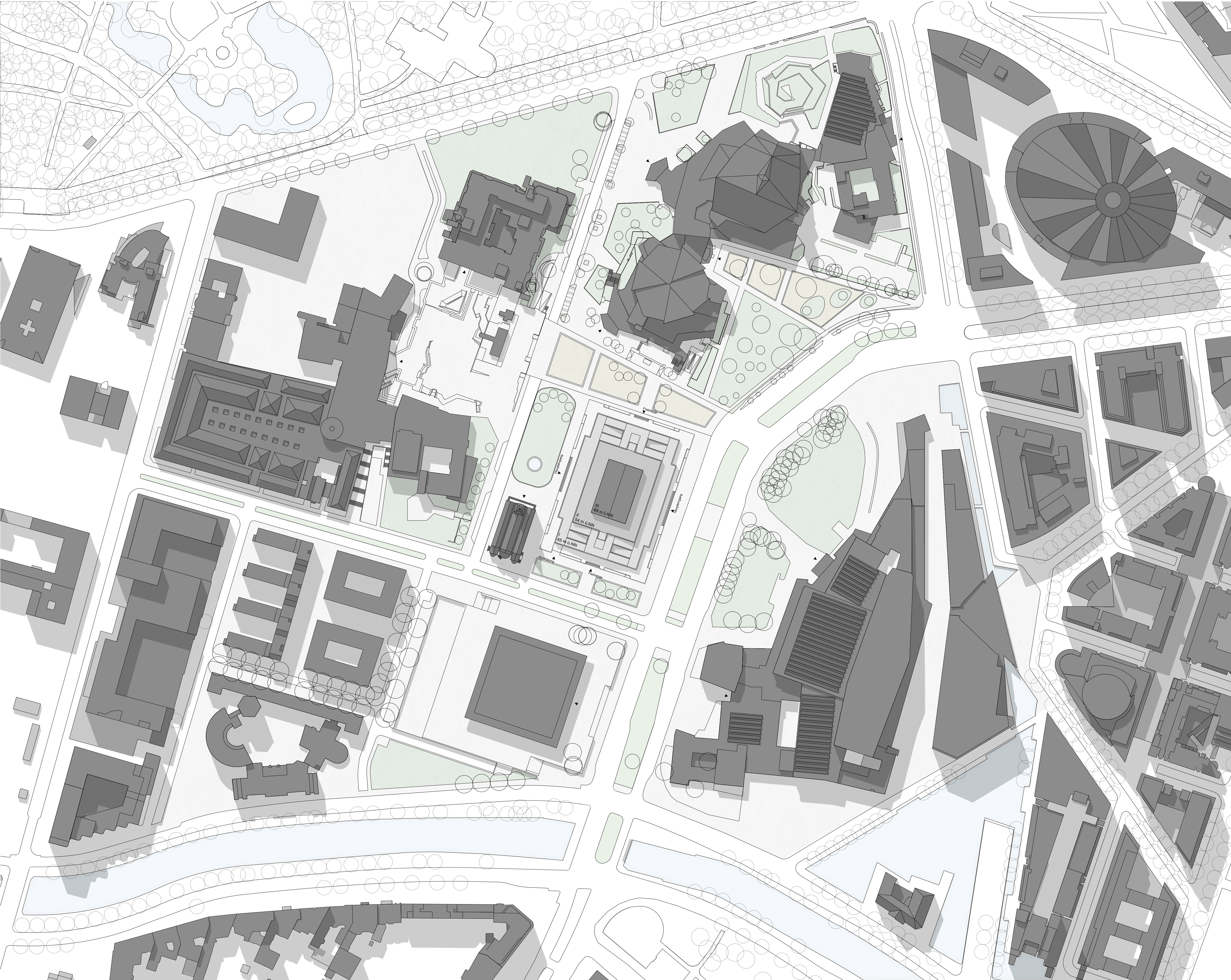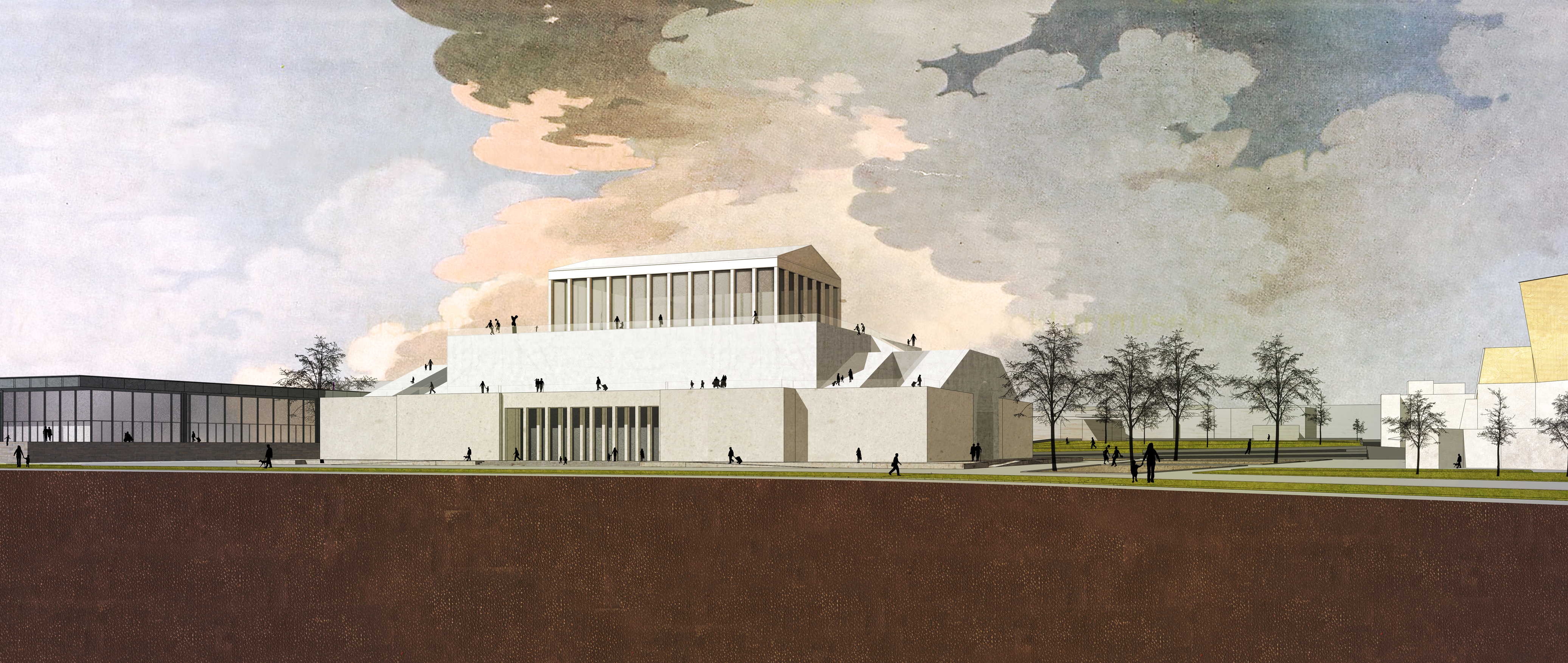 Das heutige Kulturforum wird vor dem Hintergrund der Stadtlandschaft durch herausragende Architekturikonen des 20. Jahrhunderts, die ohne räumlichen Bezug zueinander stehen, in seiner Gestaltung und Atmosphäre geprägt. Die isoliert stehenden, weltweit bedeutenden Bauten werden als Exponate des neuen Museums des 20. Jahrhunderts betrachtet und erfahrbar gemacht. Durch die reproduktive Aneignung des Entwurfes von Friedrich Gilly 1797 zu einem Friedrichsdenkmal wird nachträglich der genealogische Grundstein der Idee der Stadtlandschaft gesetzt und damit eine Kontinuität zwischen der Neuen Nationalgalerie von Mies van der Rohe und dem Museum des 20. Jahrhunderts hergestellt. In der architektonischen Haltung wird somit zum ersten Mal in der Geschichte des Kulturforums, das bisher durch formale Brüche bestimmt wird, eine Form der Inbeziehungsetzung erzeugt, die sich räumlich und architektonisch klärend auf das Umfeld auswirkt und der Vorstellung der Auslober von einem Ort der Irritation entspricht. Gleichzeitig wird dem gesamten Kulturforum die gewünschte eindeutige Adresse verliehen. Das identitätsstiftende Bauwerk lädt durch seine vielfältigen Sicht- und Wegebeziehungen die offene Gesellschaft zur tätigen Auseinandersetzung mit der Kunst des 20. Jahrhunderts ein.