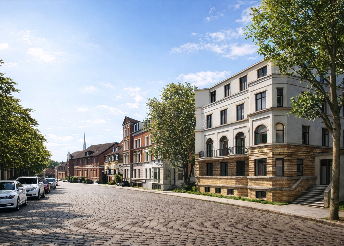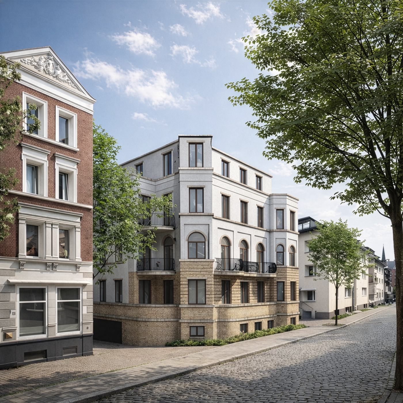 Das städtische Mehrfamilienhaus mit sieben Wohneinheiten in direkter Nähe zur Braunschweiger Universität fügt sich selbstbewusst und dennoch wie selbstverständlich in den Kontext der die Umgebung prägenden Stadtvillen ein. Die markante Staffelung zum westlichen und nördlichen Nachbargrundstück ermöglicht qualitativ hochwertige Freisitze für die Wohnungen, gibt dem Baukörper seine skulpturale Form und gewährleistet das Einhalten von baurechtlich geforderten Grenzabständen.